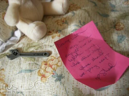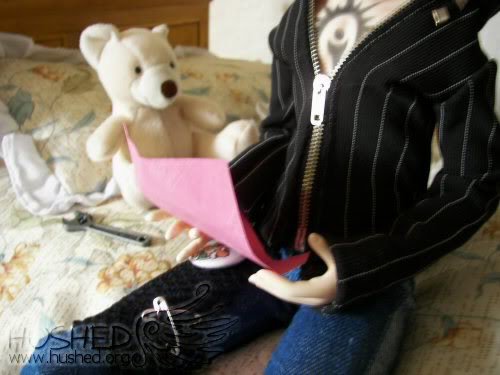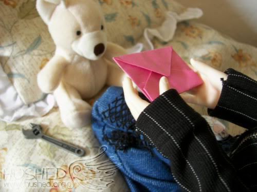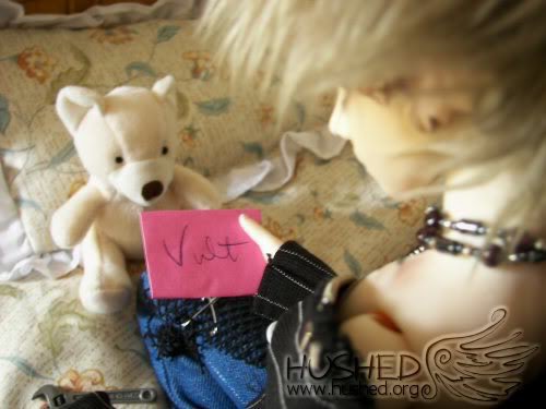 Shael, “I see you left my bear on the bed… Dearest, you won’t get me into the bedroom that easily.”