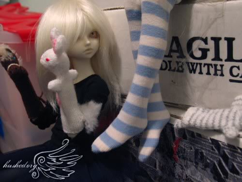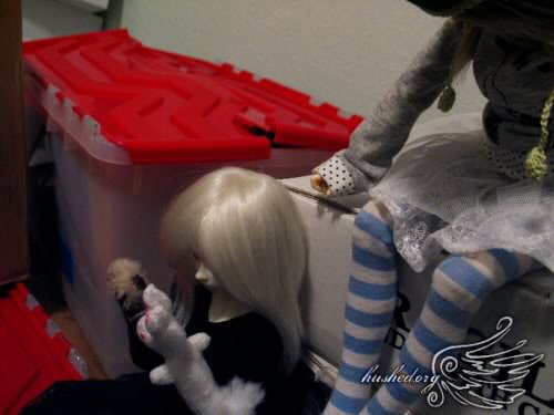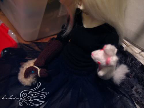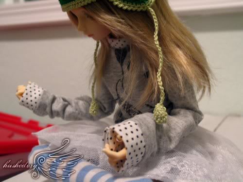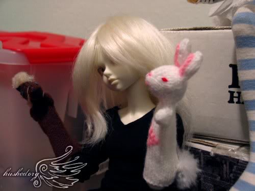 Brodwyn, “Are you sure you don’t want to play? I saved the kitty puppet for you.“