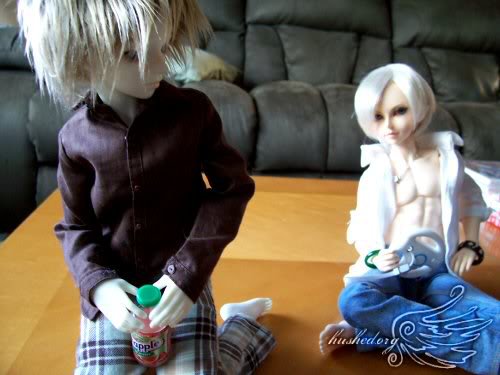 Gabe, “Girly boy?? You’re the one wearing girl jeans and a purple shirt!”