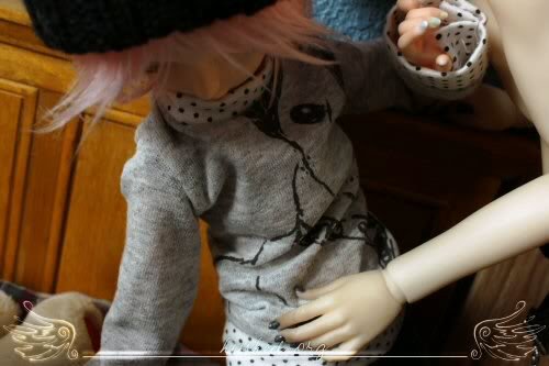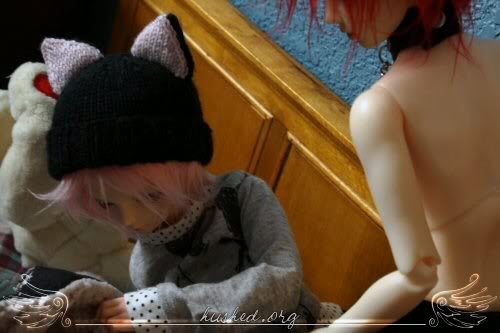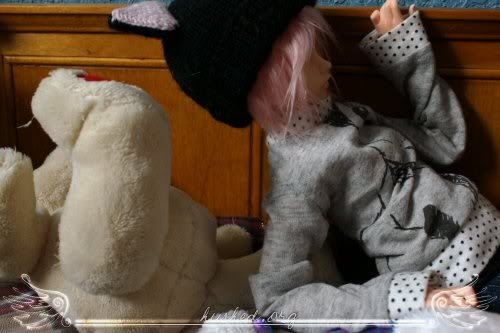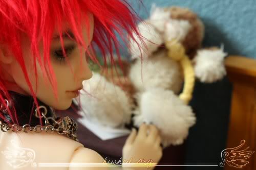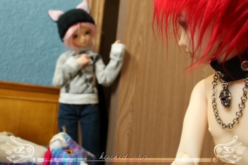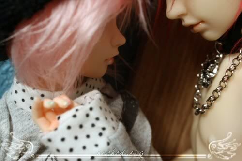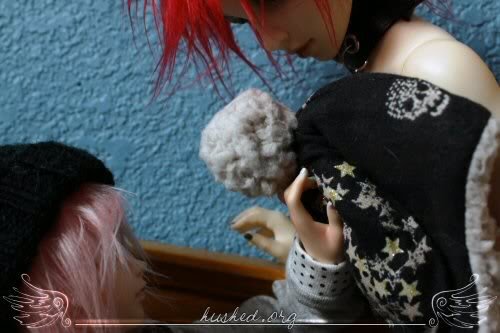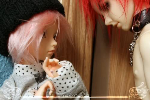 ugh, san is by far the worst at posing out of all my dolls >.< it took so long to shoot this, and the light went away really fast ; ; ickyalso the blushing on his hand rubbed against the wall or something and got pretty mutilated T_______T;;;;and i was supposed to have her slap him but i forgot >:/ pewp