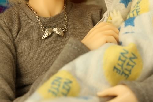 Gabe, “Hey there, sleepyhead. Chilly little baby.”
